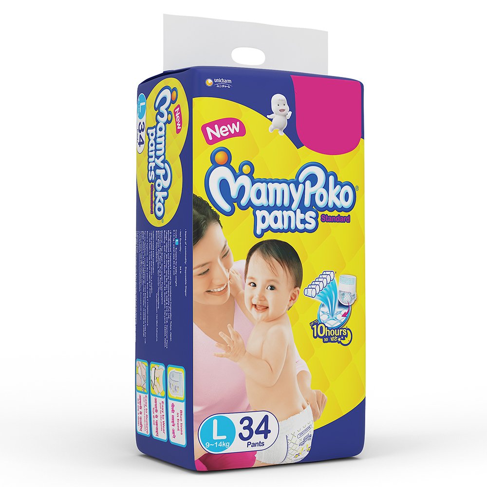 - Pant style diaper that is easy to pull up and take off, just like underwear.